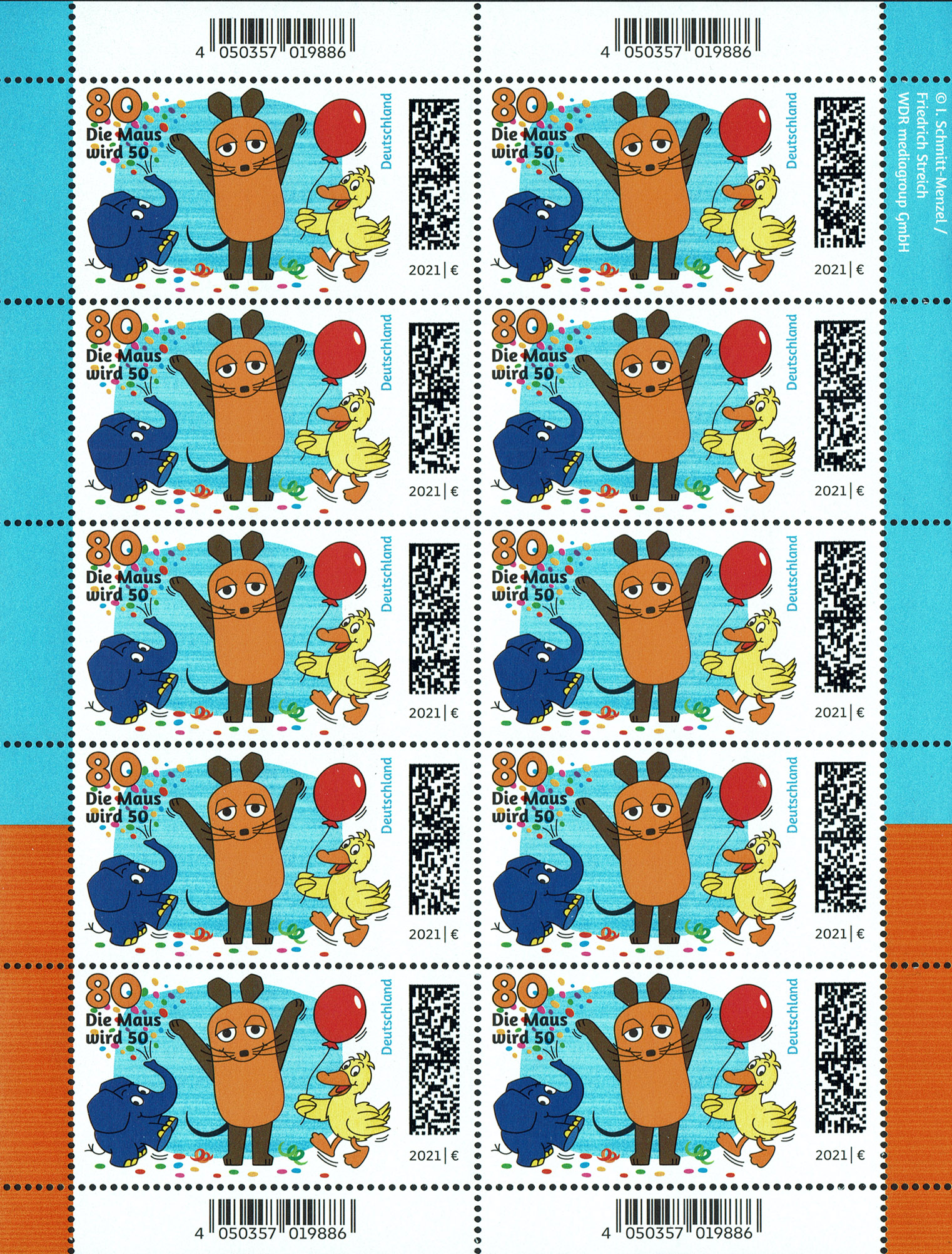 Nutzung der Merkliste. Bogen mit 50 Marken. Finden Sie Top-Angebote fr 10 x 80 Cent Briefmarken 50 jahre Die Sendung mit der Maus selbstklebend bei eBay.