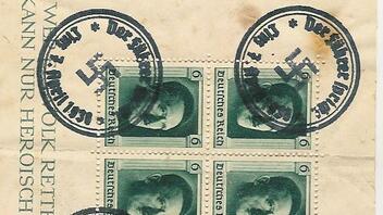 28042015 Passionierte Briefmarkensammler kennen einen Markenblock aus den ersten Jahren des Regimes mit dem Aufdruck. 1937 Briefmarken Block 9. Er enthlt vier bildgleiche Briefmarken zu 619 Pfg.